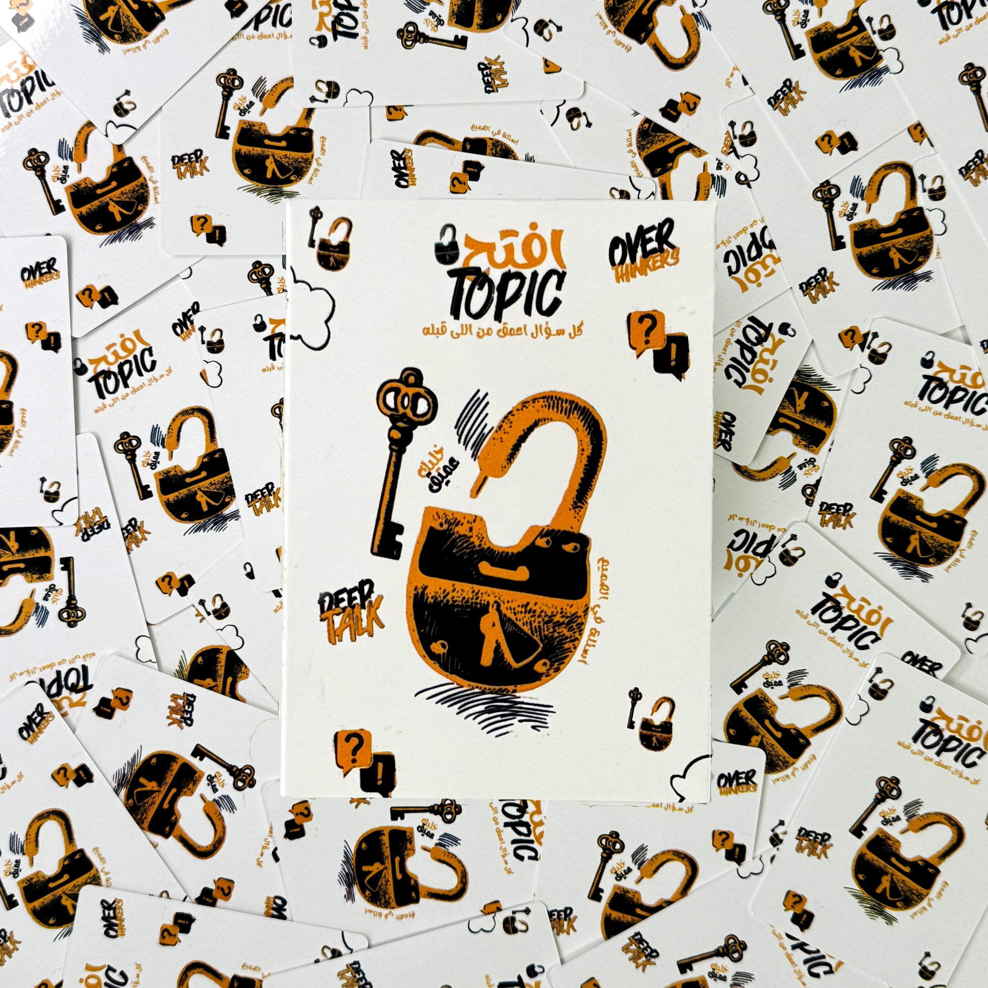 شرح اللعبة: العلبة فيها ٣٠ كارت بشكل عشوائى كل كارت فيه سؤال اعمق من اللى قبلة تقدر تفتح بيه موضوع للمناقشة في أى قاعدة